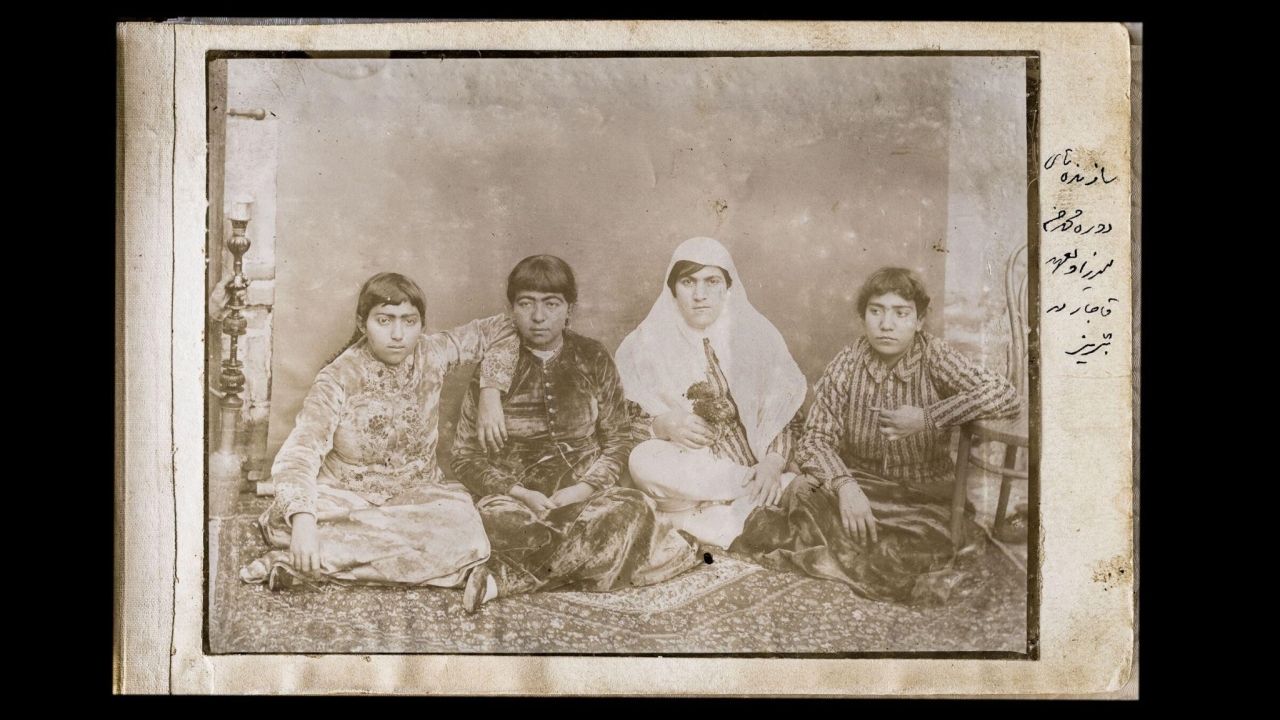 زينب باشا، المرأة المسلّحة التي تحمل الزهور في يديها. تبريز، تسعينيات القرن التاسع عشر.