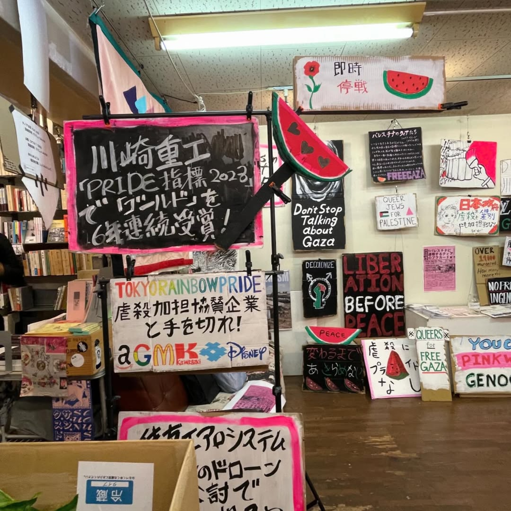 منذ تشرين الأول/أكتوبر 2023، أحدثت الإبادة الجماعية في غزة صدمة واسعة في أوساط الرأي العام الياباني، وأسفرت عن تصاعدٍ غير مسبوق في أشكال الانخراط المناهض للصهيونية.59 كما شكّل هذا السياق محفّزًا أساسيًا لتكثيف الفعل السياسي في أوساط الناشطين الكويريين في اليابان. ففي شباط/فبراير 2024، أطلقت حركة "BDS اليابان" حملةً ضد احتمال إقدام وزارة الدفاع اليابانية على شراء طائرات عسكرية مسيّرة إسرائيلية،60 داعيةً إلى سحب الاستثمارات من إسرائيل.61 ومن المقرّر أن تُنفَّذ هذه الصفقة عبر أربع شركات يابانية خلال السنة المالية 2026. وقد أولت الأوساط الكويرية اليابانية اهتمامًا خاصًا بشركتين من وكالات الاستيراد المعنية، هما "كاواساكي للصناعات الثقيلة" وشركة "سوميتومو"، وكلتاهما حاصلتان على تصنيف "ذهبي" ضمن "مؤشر الفخر".62 وخلال مؤتمر "مؤشر الفخر" لعام 2024، طالب ناشطون كويريون بسحب هذا التصنيف، مؤكدين أنه لا يمكن لأي شركة أن تدّعي دعم حقوق مجتمع "الميم-عين" في الوقت الذي تسهم فيه في تسهيل الإبادة الجماعية.63