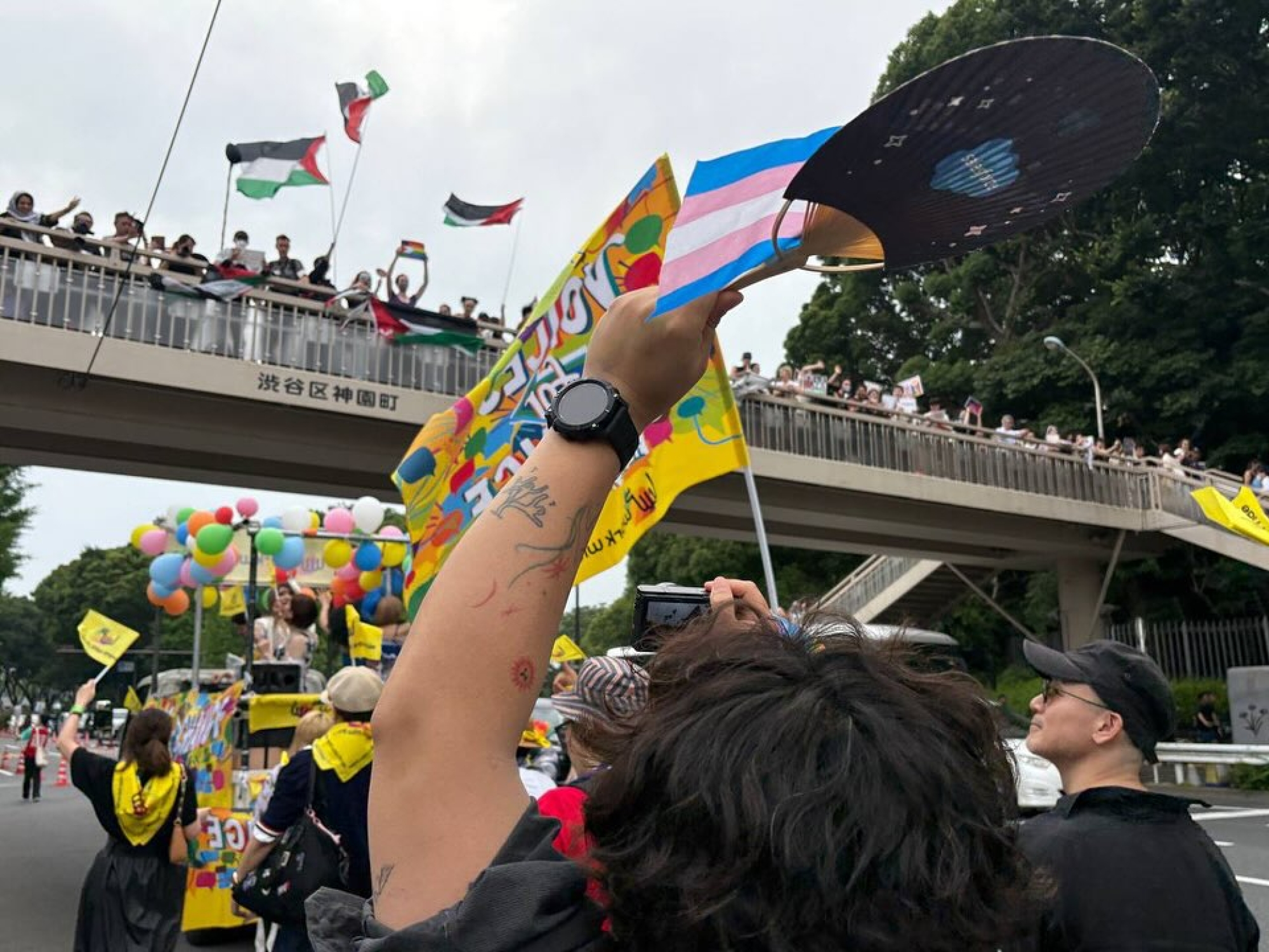 في عام 2025، أعادت "فعالية طوكيو راينبو برايد" (TRP) تسمية نفسها لتصبح "طوكيو برايد" وأعلنت سياسة رعاية جديدة تتضمن الالتزام بـ"احترام جميع الكائنات وحقوق الإنسان" و"عدم التسامح مطلقًا مع أي شكل من أشكال العنف".68 وعلى الرغم من أن البيان الرسمي لم يذكر ذلك صراحةً، فقد أدّى ذلك عمليًا إلى استبعاد شركتي "كاواساكي للصناعات الثقيلة" و"سوميتومو" من قائمة المموّلين.69 خلال موكب 2025، الذي شارك فيه نحو 15,000 شخص، رُفعت العديد من اللافتات واللوحات التعبيرية دعماً لفلسطين، في تذكيرٍ قويّ بأن النضال الفلسطيني يعدّ قضية كويرية أيضًا. ويُظهر هذا التحوّل في حركة التضامن أن المجتمع النسوي الكويري الياباني ليس ثابتًا أو سلبيًا؛ بل يشارك بفاعلية في القضايا السياسية والأخلاقية ضمن سياقاتها المحلية والتاريخية، ويعيد رسم اتجاه النشاط الكويري في اليابان.