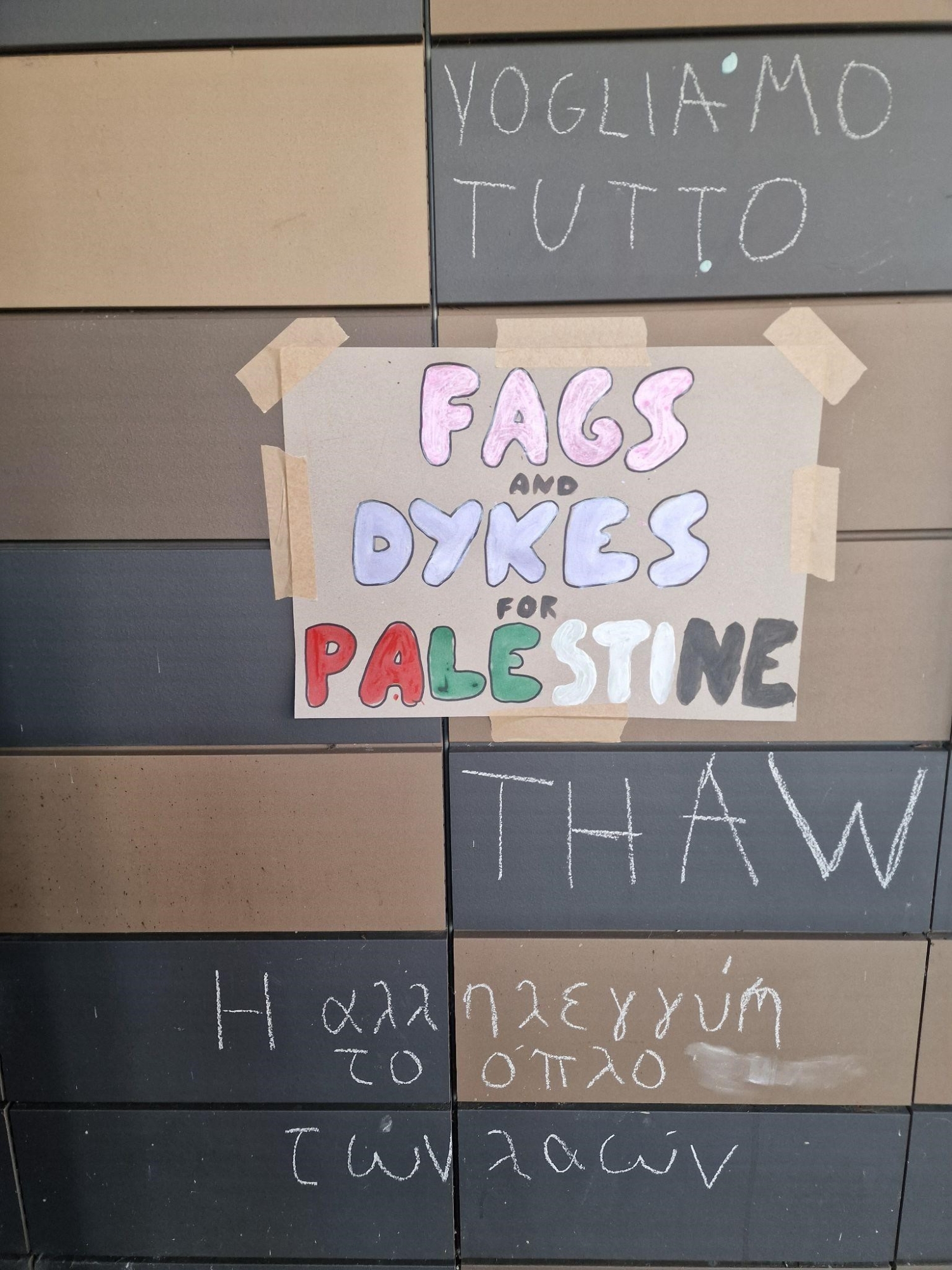 "لوطيون وسحاقيات من أجل فلسطين". صورة خاصة. غولدسميث من أجل فلسطين، احتلال مبنى البروفيسور ستيوارت هول، 2024.