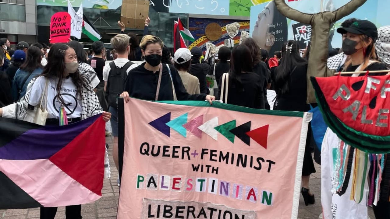 @normalscreen (Instagram), Photograph from the #NoPrideInGenocide Demonstration, 2024. https://www.instagram.com/p/C6VFZyUSHKp