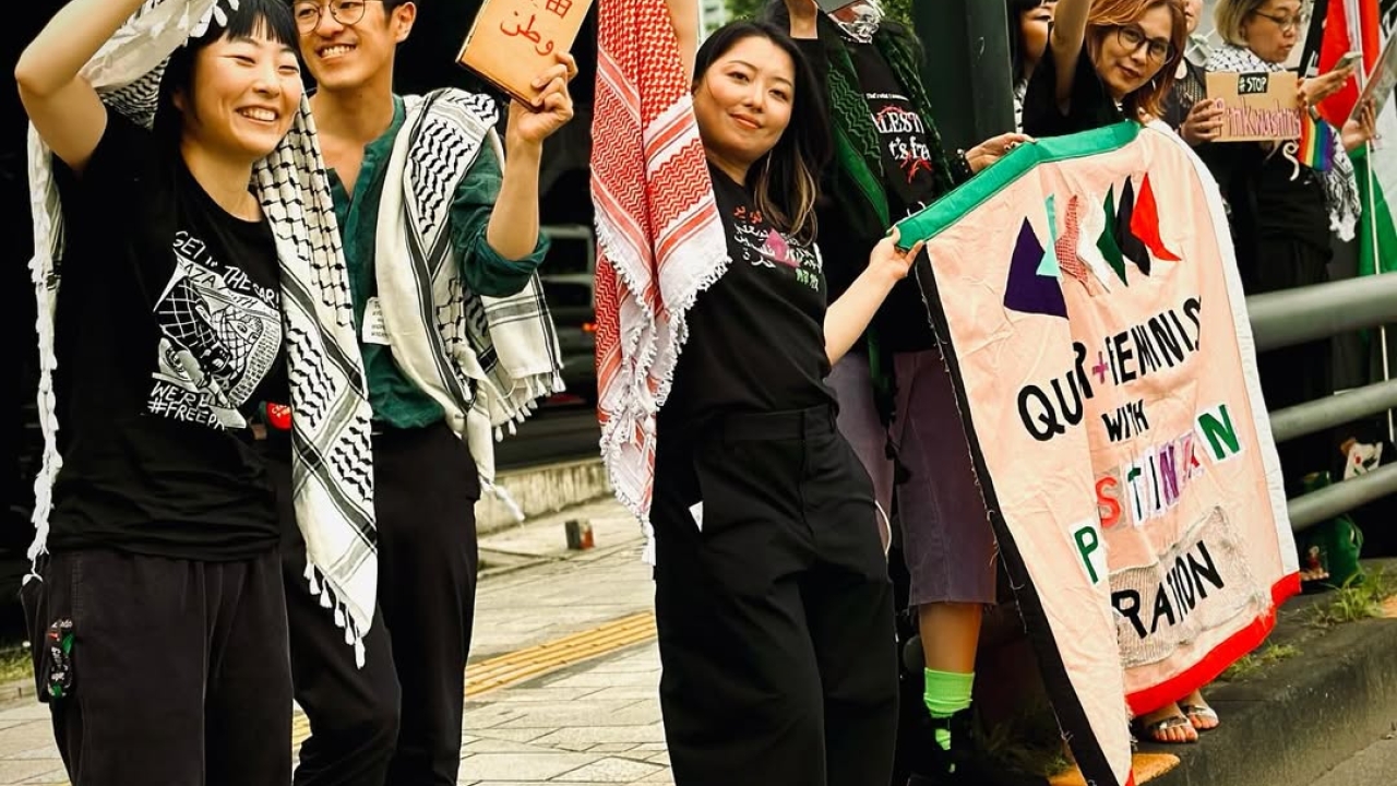 @sucklaver (Instagram), Queer Feminists with Palestinian Liberation at the Tokyo Pride March, 2025. https://www.instagram.com/p/DKspLJMBorP/